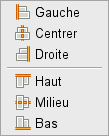 Quand vous sélectionnez plusieurs blocs, il est possible de les aligner sur l'axe horizontal (Haut, Bas et Milieu) ou sur l'axe vertical (Gauche, Droite et Centre).