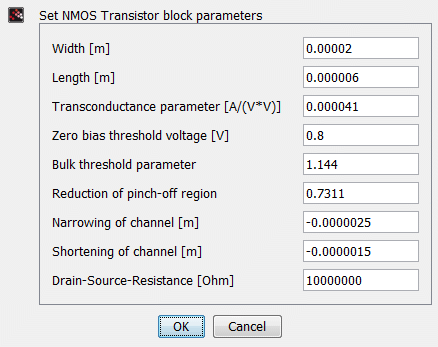 The NMos model is a simple model of a n-channel metal-oxide semiconductor FET. It differs slightly from the device used in the SPICE simulator. For more details please care for H. Spiro.