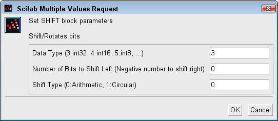 • Input : scalar. All Scilab's integer type (Data Type parameter).