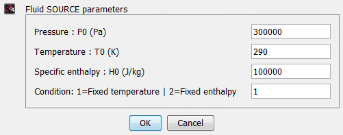 • Enthalpie spécifique de la source : H0 (J/kg)