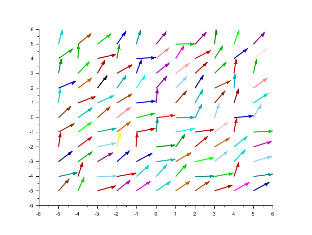 This field defines a tlist data structure of type "champdata" composed of a row and column indices of each element : the x and y grid coordinates are contained respectively in data.x and data.y. The complementary fields named data.fx and data.fy are matrices which describe respectively the x and y component of the vector field at point (x(i),y(j)).