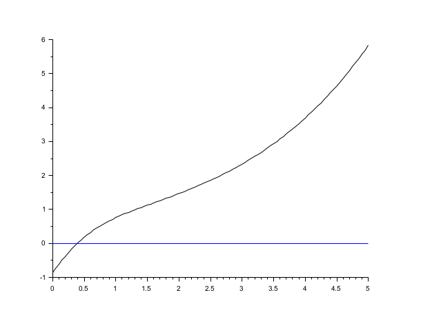 s=poly(0,'s'); rand('seed',0); w=ssrand(1,1,3); w('A')=w('A')-2*eye(); t=0:0.05:5; plot2d([t',t'],[(csim('impulse',t,tf2ss(1/s)*w))',0*t'])