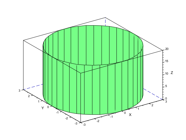 Cylinder with radius equal to 3, more points over circumference, and height equal to 20: