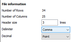 File information as number of rows and columns.