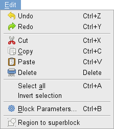 Open the block configuration dialog for the current selected block. The configuration depends of the used block (see the block help to obtain more information on its configuration).
