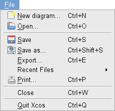 If several diagrams are opened, the Close action the current diagram. If only one diagram is opened, the Close action will close Xcos. The auxiliary windows as viewport, palettes, etc are also closed if necessary.