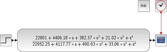 importXcosDiagram("SCI/modules/xcos/demos/Command.zcos") // Clear any pre_xcos_simulation; clear pre_xcos_simulate; function post_xcos_simulate(%cpr, scs_m, needcompile) // Retrieve all objects objs = scs_m.objs; //Looking for CLR block for i=1:size(objs) if objs(i).gui == "CLR" then clrBlock = objs(i); break; end end // Check if we found some CLR if ~exists("clrBlock","local") then disp("No CLR block found.") return end // Retrieve exprs exprs = clrBlock.graphics.exprs; s = poly(0,'s'); num = evstr(exprs(1)); den = evstr(exprs(2)); h = syslin('c', num/den); // Open new figure then plot Bode scf(max(winsid())+1); bode(h, 0.01, 100); endfunction xcos_simulate(scs_m, 4);