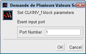 Ce bloc représente une port d'entrée d'évènement. Il doit être utilisé uniquement à l'intérieur d'un Super bloc Xcos et être connecté à un port d'entrée d'activation dans le sous-système.