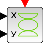 This block realizes the visualization of the evolution of the two regular inputs signals by drawing the second input as a function of the first at instants of events on the event input port. When a point is drawn on screen it stays until the simulation is finished.