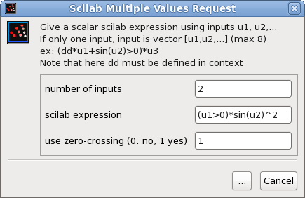 The Expression block applies the specified Scilab expressions to its input.