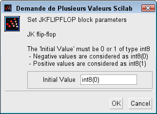 L'utilisateur peut donner la valeur initiale de l'état de sortie avec le paramètre Initial Value.