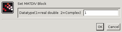 Il indique le type de la sortie. Il supporte seulement les types double (1) et complexe (2). Si on entre une autre valeur dans ce paramètre, Xcos affiche le message "Datatype is not supported".