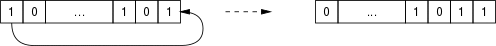 1 : un décalage circulaire est appliqué au signal d'entrée. Dans ce cas, il y a rotation des bits comme si les extrémités de droite et de gauche du registre étaient jointes. La valeur qui est insérée à droite pendant un décalage à gauche est la valeur qui est décalée et sortie à gauche et vice et versa.