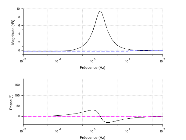 Les arguments optionnels wmin et wmax (en rad/s) peuvent être utilisés pour tracer des asymptotes dans un périmètre précis.