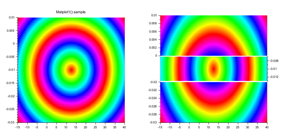 x = linspace(-15,15,400); clf subplot(1,2,1) gcf().axes_size = [720 360]; plot2d(x, sinc(x).^2) ax0 = gca(); Axes = cutaxes(ax0, "y",[0 0.1 ; 0.1 1], "widths","-"); is_handle_valid(ax0) // %F: le repère graphique initial a été supprimé