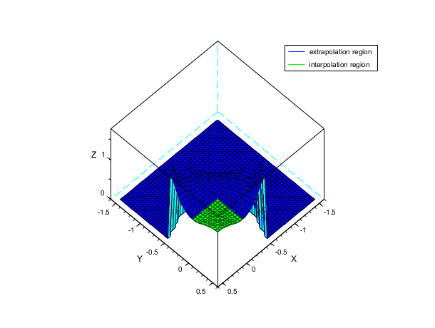 legends(["extrapolation region","interpolation region"],[2 3],1)