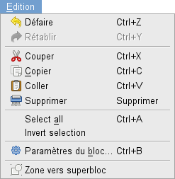 Menu Édition