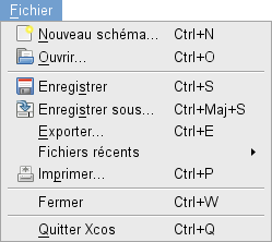 Entrées de menu de l'éditeur Xcos