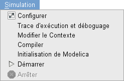 Sélectionnez l'item Démarrer pour lancer la simulation. Si le système a déjà été simulé, un dialogue est affiché dans lequel vous pouvez choisir entre Continuer, Redémarrer ou Terminer la simulation.