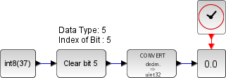 This block sets to 0 the specified bit of its input. The user gives the bit index in the field Index of Bit with index 0, as that of the least significant bit.The operation can be summarized by this expression: