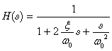 この例では,制御系は, ダンピング係数 = 0.5, カットオフ周波数 fc = 100 Hzの 2次の単位ゲインローパスフィルタです. 伝達関数 H(s) を以下に示します: