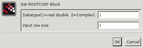 This block computes the coefficients of a polynomial given its root values. This roots are given on the input in the form of a column vector. The length of the root's vector must be specified in the input row size parameter.