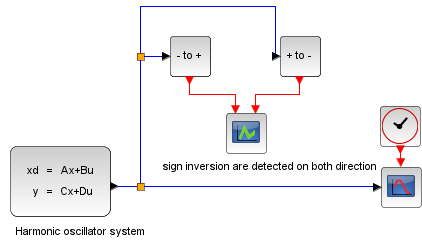 Some problems require zero crossing detection of continuous functions (for instance, regulation systems), also named rootfinding. This feature is common to all solvers, and is realized by following the same process.