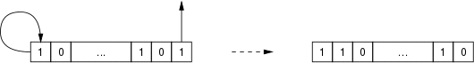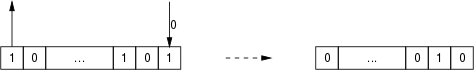 • 1 : a circular shift is applied to the input signal. In this case, the bits are rotated as if the left and right ends of the register are joined. The value that is shifted in on the right during a left-shift is whatever values was shifted out on the left, and vice versa.