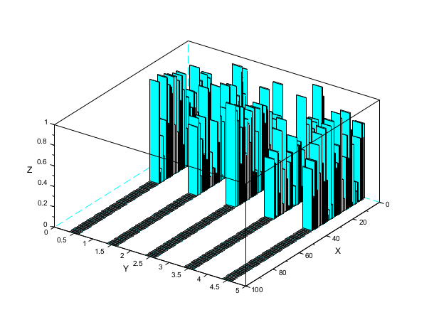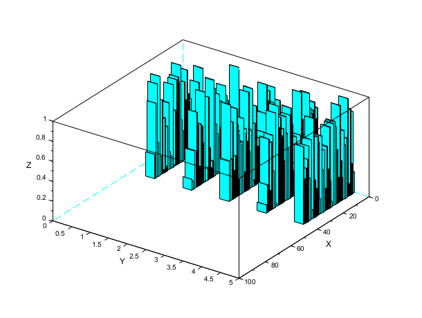 Z = zeros(100,5); A = abs(rand(40,5)); Z(1:40,:) = A; A = abs(rand(10,5)); Z(91:100,:) = A; scf(); bar3d(Z); isoview off