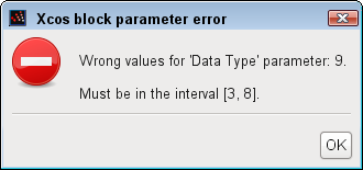 Displays a parameter input error box for a Xcos block
