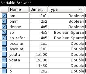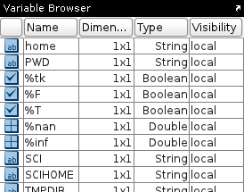 Scilab variable browser