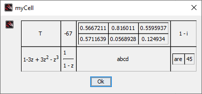 a = rand(10,10); b = "my string"; myCell = makecell([2 4],%t, int(-67),rand(2,3),1-%i,(1-%z)^3,1/(1-%z), "abcd", {"are", 45}); myList = list("Hello", grand(2,4,"uin",-100,100), [%t %f %f ]', (1-%z).^[1 2]); myStru = struct("num",{3.1415, -1, %i}, "pol", {%z (1-%z) 2+%z^3}, "txt",{"Hi" "Hello" "Hola"}); function r=myTest(a, b), c = 2; r = a*c - b; endfunction statLib = statisticslib; plot2d() curves = gce(); browsevar();