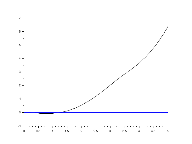s=poly(0,'s'); rand('seed',0); w=ssrand(1,1,3); w('A')=w('A')-2*eye(); t=0:0.05:5; plot2d([t',t'],[(csim('impulse',t,tf2ss(1/s)*w))',0*t'])
