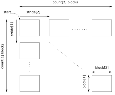 引数 start, count, stride および block の大きさはデータの次元数と等しい必要があります: