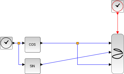 This block realizes the visualization of the evolution of the three regular input signals by drawing the third input as a function of the two others at instants of events on the event input port. When a point is drawn on screen it stays until the buffer length is reached. This scope is useful to make simple animations.