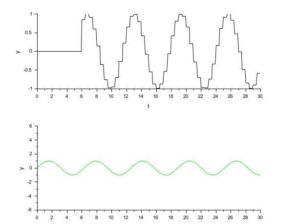 This compiled super-block implements a discretized delay. It is built with a shift register and a clock. The value of the delay is given by the discretization time step multiplied by the number-1 of state of the register.