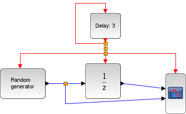 One event is generated Delay after an event enters the unique input event port. The initial output event is also defined through parameters. The event date of that block is computed by the formula :