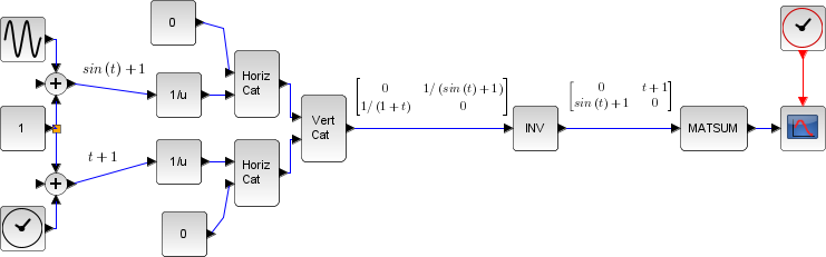 Matrix Inverse example: inv([0 1/(sin(t)+1) ; 1/(t+1) 0])