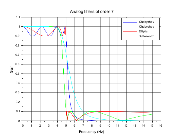 • "cheb1" is for Chebyshev type I filter.
