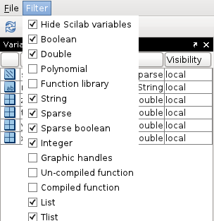 Scilab variable browser