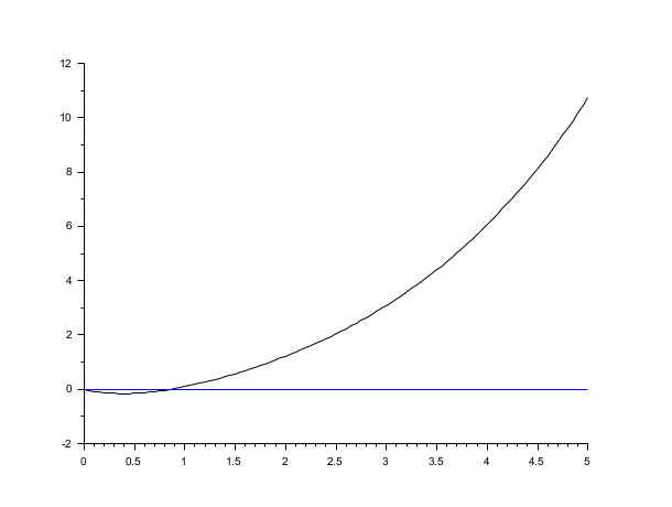 s=poly(0,'s'); rand('seed',0); w=ssrand(1,1,3); w('A')=w('A')-2*eye(); t=0:0.05:5; plot2d([t',t'],[(csim('impulse',t,tf2ss(1/s)*w))',0*t'])