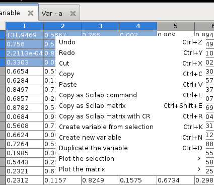 Scilab variable editor