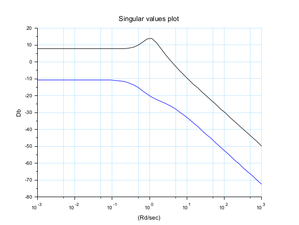 xtitle("Singular values plot","(Rd/sec)", "Db");