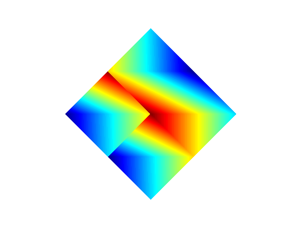 // cores interpoladas clf() f=gcf(); a=gca(); a.data_bounds=[0,-10;40,30]; isoview(); x1=[0,10,20,10]'; y1=[10,0,10,20]'; c=linspace(2,100,4)'; xpols=[x1 x1+20 x1+10 x1+10]; ypols=[y1 y1 y1+10 y1-10]; cols= [c c($:-1:1) c([3 4 1 2]) c] f.color_map=jet(max(cols)); xfpolys(xpols,ypols,cols)