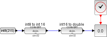 This block converts an input signal of real double or integer data type to an integer or real double data type. This block is particularly useful to connect a block which accepts or produces only integer data type with another block which produces or accepts only double data type.