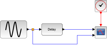 This compiled super-block implements a discretized delay. It is built with a shift register and a clock. The value of the delay is given by the discretization time step multiplied by the number-1 of state of the register.