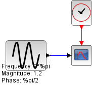 This diagram shows the output of the block GENSIN_f for an amplitude value of 1.2 and an initial phase offset of 90°.