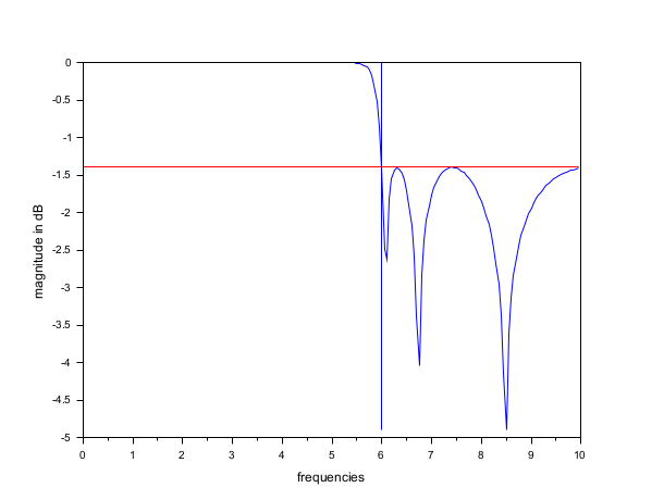 xtitle("", "frequencies", "magnitude in dB");