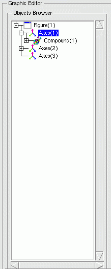 Placed on the left side of the graphical editor, a hierarchical tree selector specifies which object is currently edited. It can be used to switch from a graphic object to another provided that they are in the same graphic window.