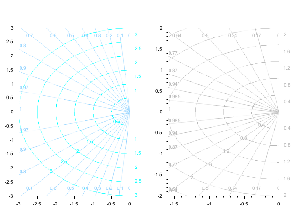 sgrid() sGrid = gca().children.children.children; i = find(sGrid(3:$).type=="Polyline" & sGrid(1:$-2).type=="Polyline",1); Circles = sGrid(1:i-1); Circ_text = Circles(Circles.type=="Text"); // Labels Circ_text.font_size = 2; Circ_lines = Circles(Circles.type=="Polyline"); // Circles Circ_lines.line_style = 8; Rays = sGrid(i:$); Rays(Rays.type=="Text").font_foreground = color("light slate blue"); Rays_lines = Rays(Rays.type=="Polyline"); set(Rays_lines, "line_style", 9, "thickness", 1.5);